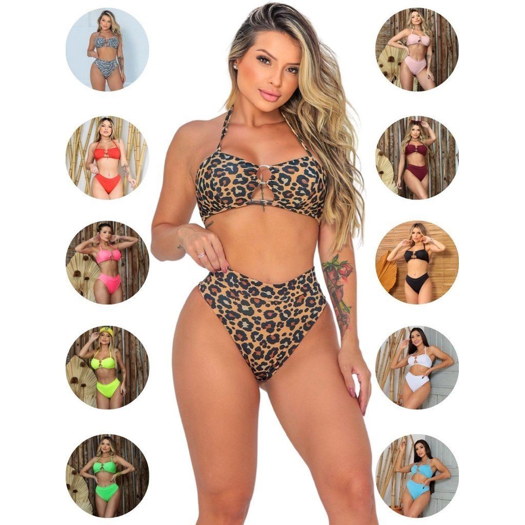 Biquini feminino hot pants argola amarrar cintura alta moda praia