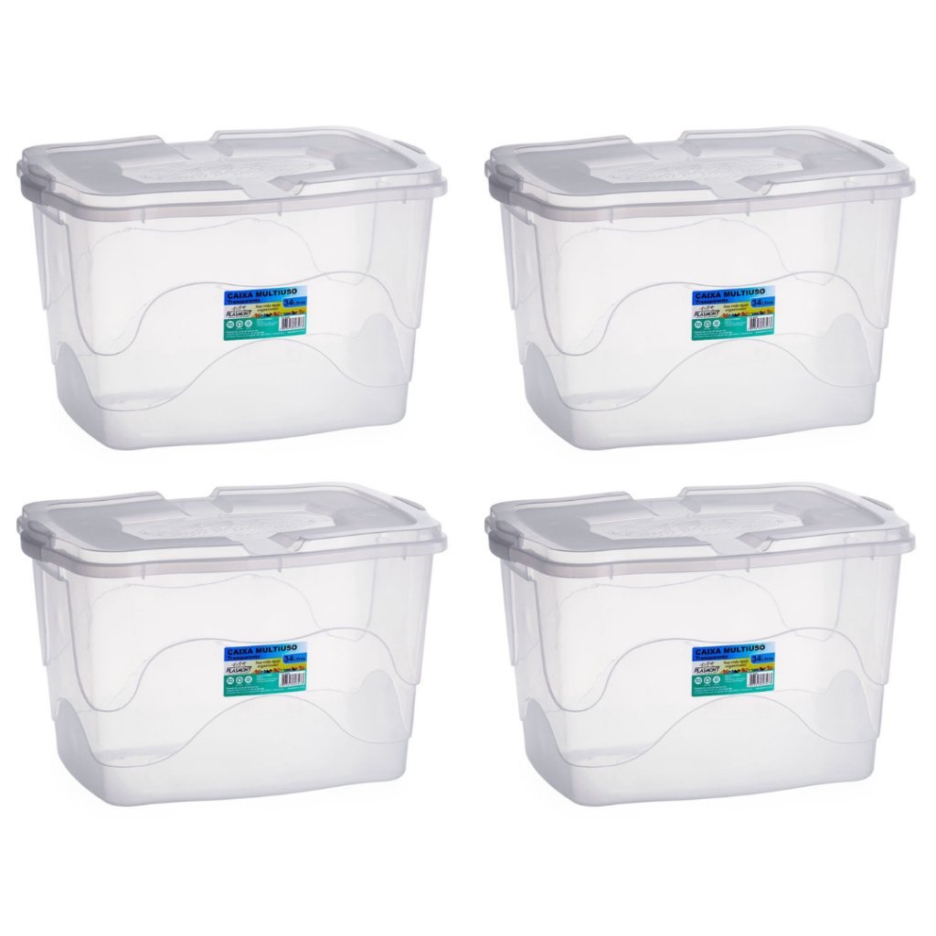 Caixa organizadora grande 34l com tampa transparente plástica container roupas livros brinquedos