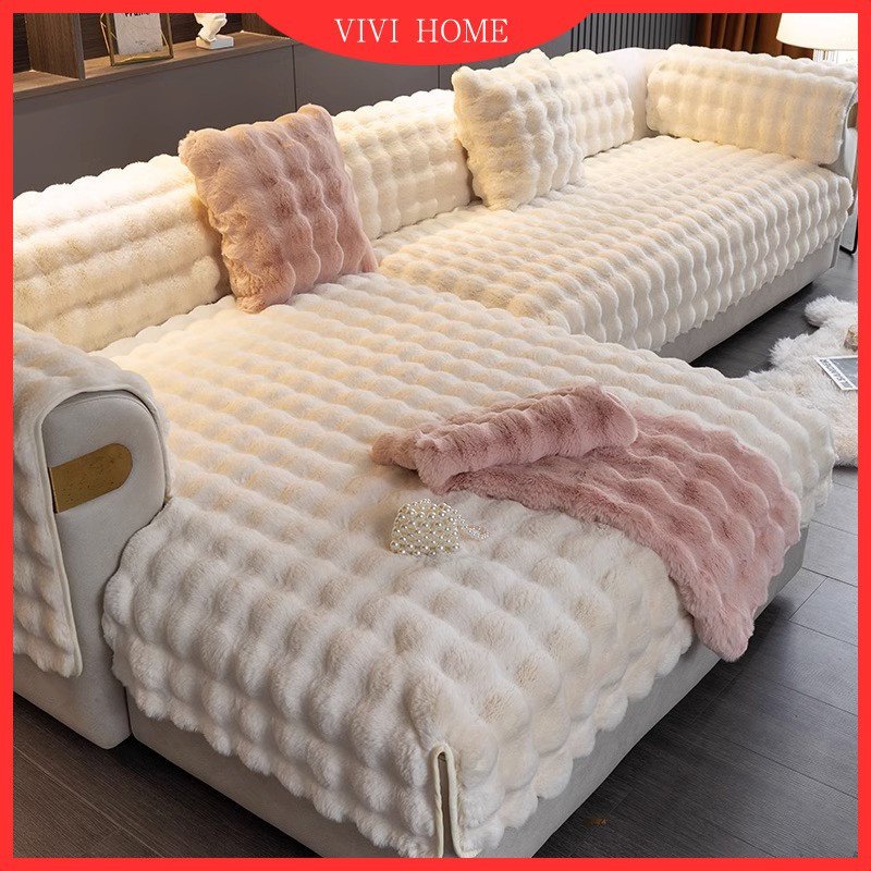 Capa de sofá pelúcia coelho 1 2 3 4 lugares em forma l almofada grossa protetor tecido antiderrapante toalha