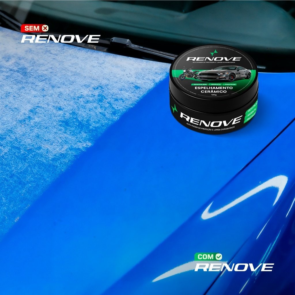 Cera espelhamento renove – remove riscos, repele água, proteção sol e chuva, brilho intenso