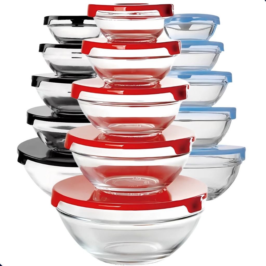 Conjunto 5 potes vidro com tampa jogo de vasilhas tigelas bowls marmita armazenamento alimentos