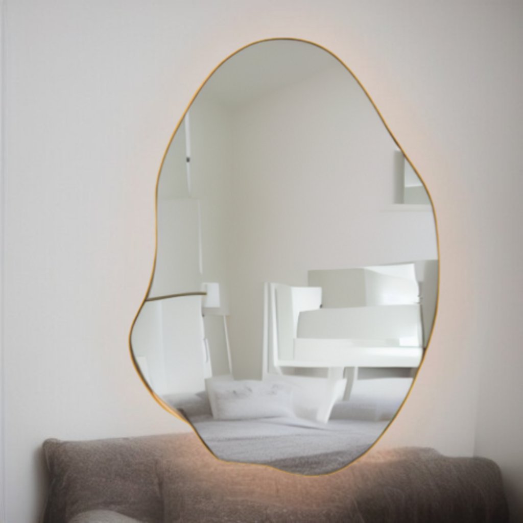 Espelho orgânico com moldura mykonos metalizada dourada rosê prata preta decoração