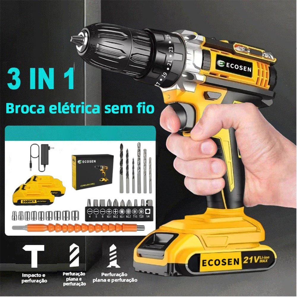 Furadeira parafusadeira de impacto sem fio bateria 21v com duas baterias recarregáveis 6500 mah