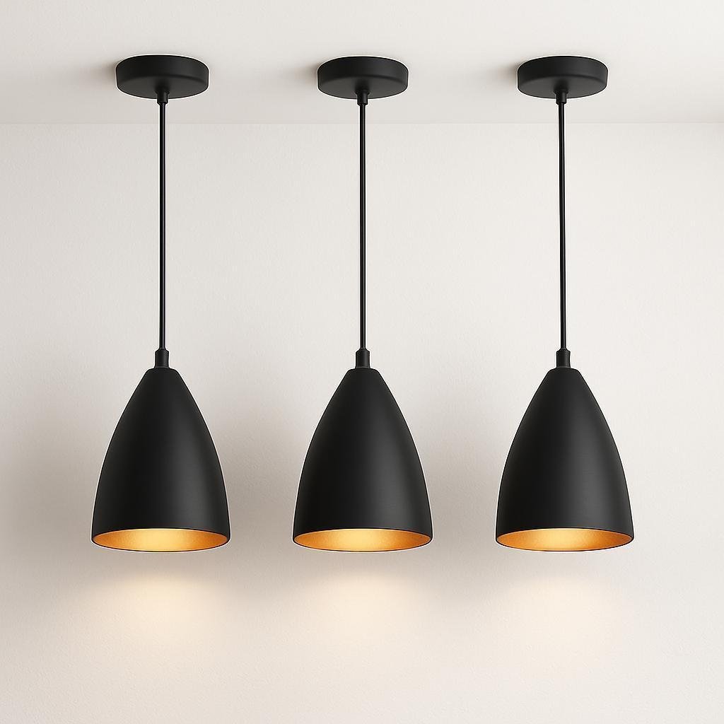 Kit 3 luminárias modernas pendentes sala jantar de teto preta