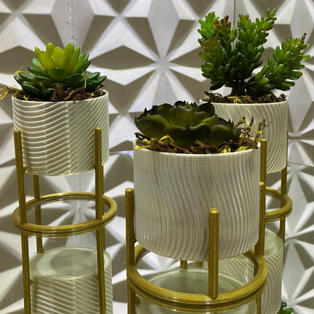 Kit 3 vasos cachepot decorativo com suporte para mini cactos ou suculentas plantas artificiais naturais