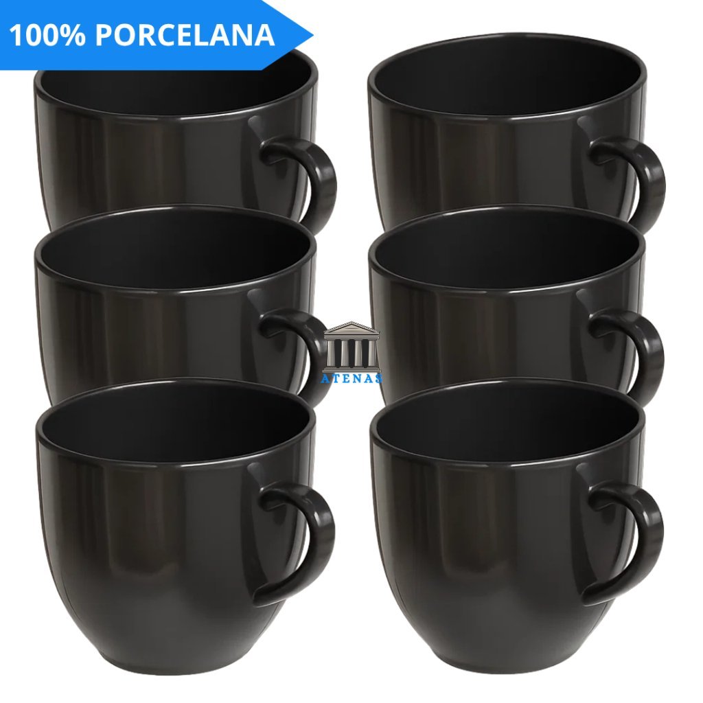 Kit 6 xicara cafe cha porcelana 95ml preta preto chicara caneca