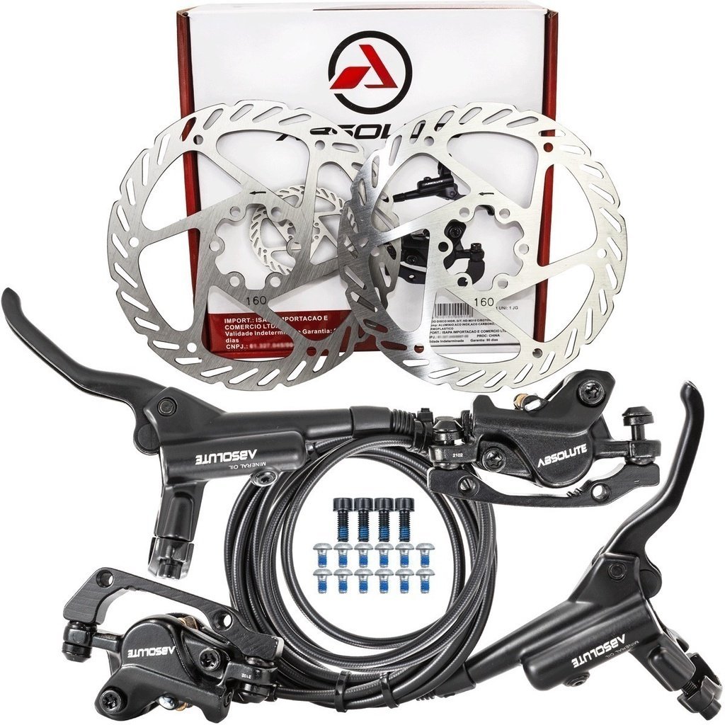 Kit freio a disco hidráulico absolute wild completo par + discos 160mm óleo mineral pronto p/ uso mtb