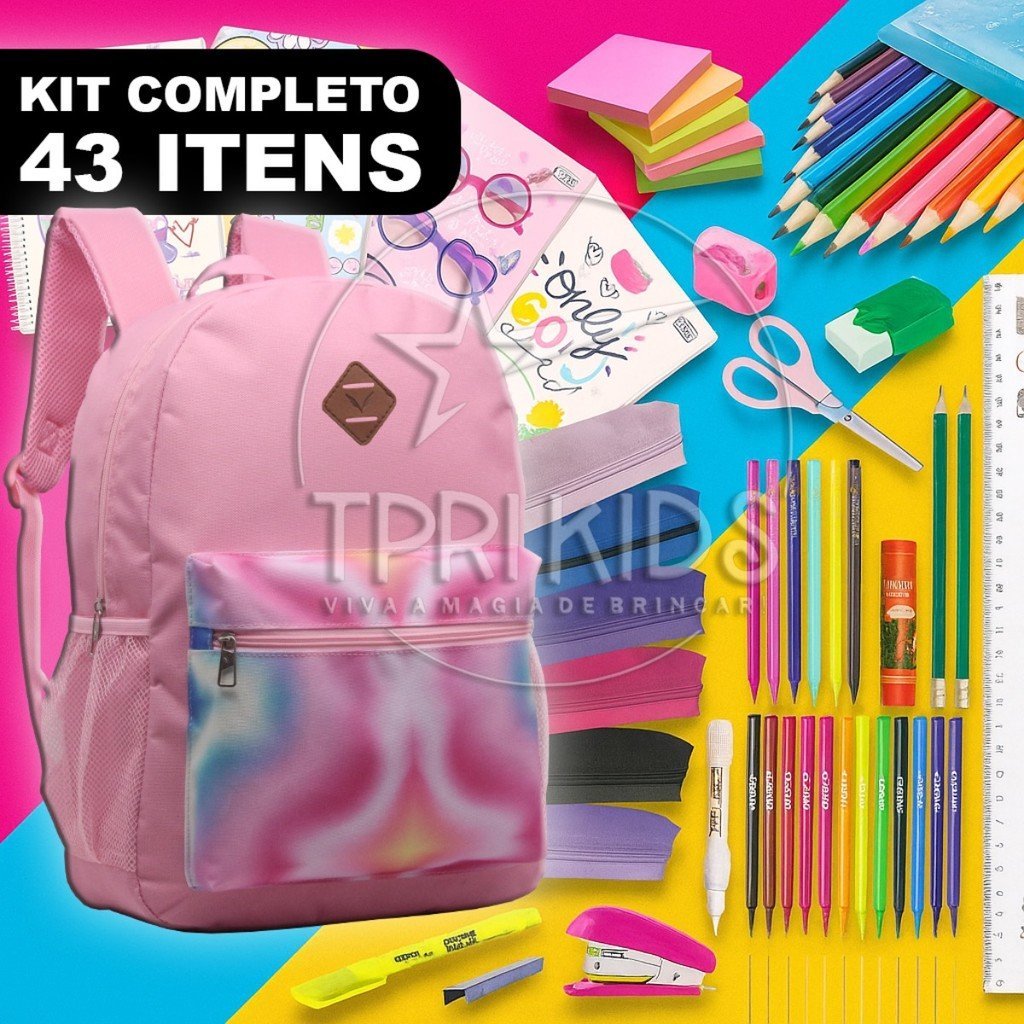 Kit material escolar completo mochila menina ensino fundamental médio faculdade escola estojo caderno feminino aurora