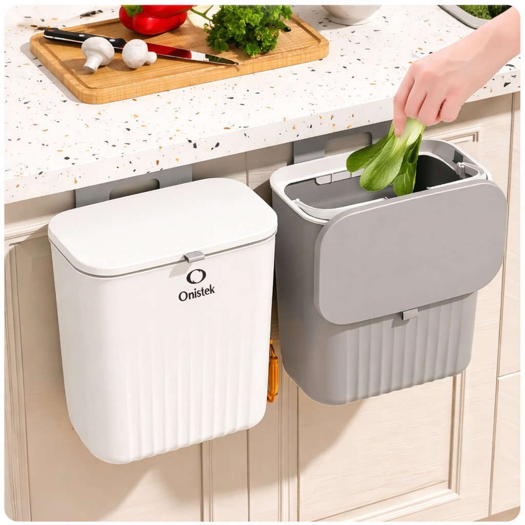 Lixeira de cozinha suspensa 9 litros com tampa e alça pendurar on-sm028