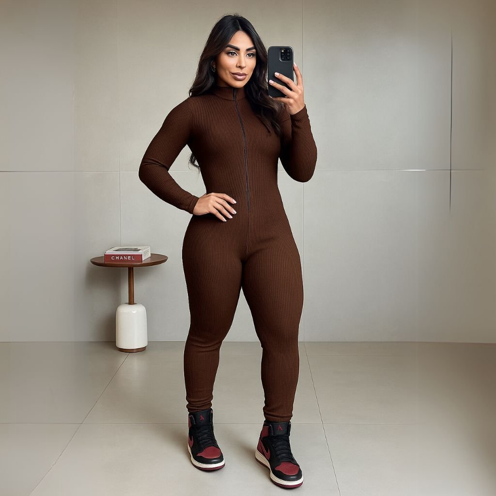 Macacão ribana manga longa–ajustado, elegante e ideal para o inverno