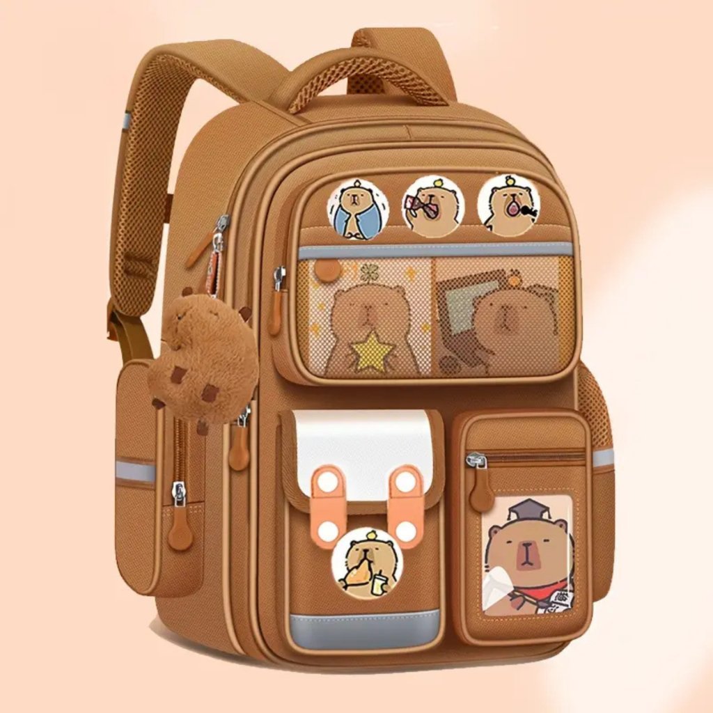 Mochila de capybara com estampa desenho animado – grande capacidade, leve e durável vários bolsos, alças ajustáve