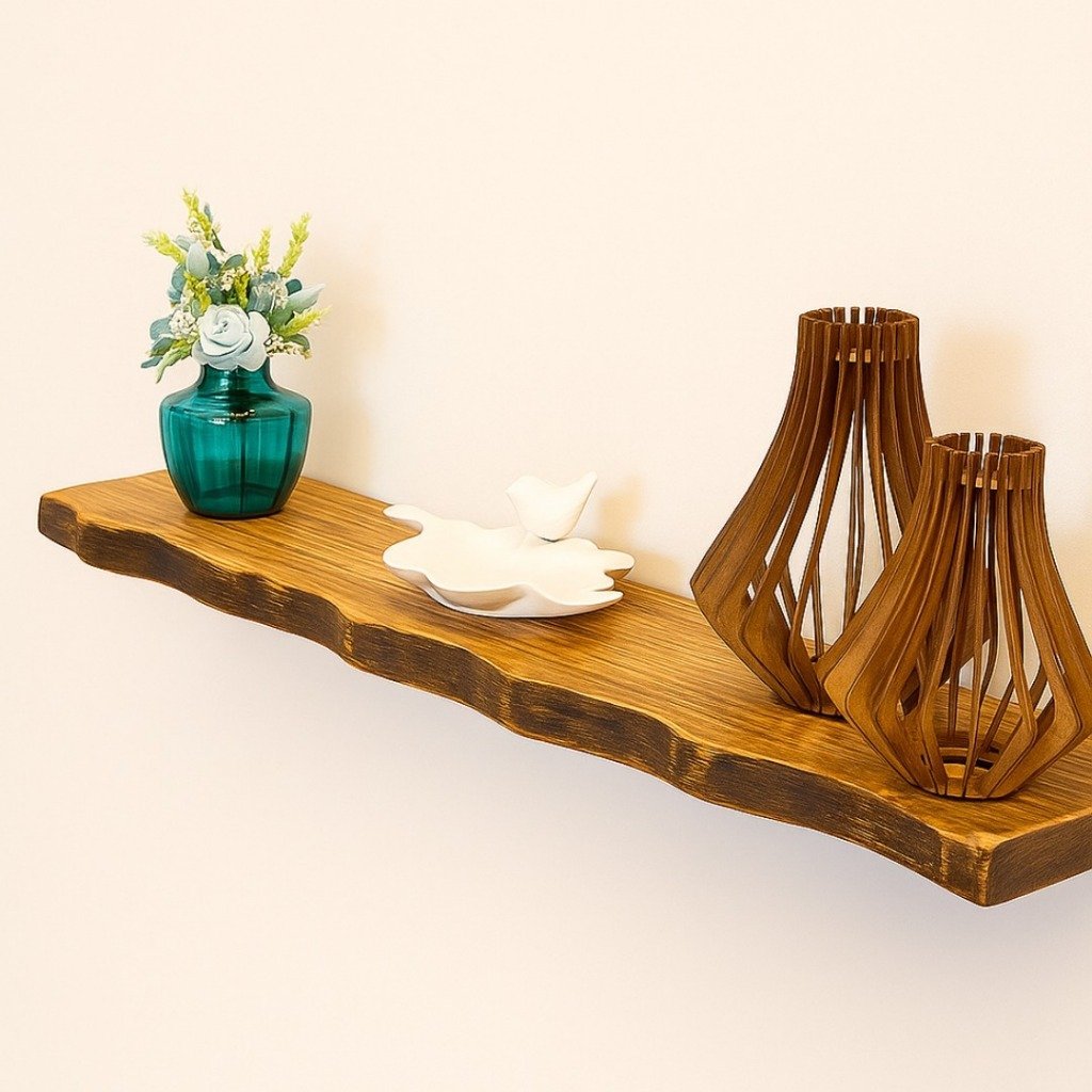 Prateleira rústica borda irregular madeira maciça 14 cm profundidade