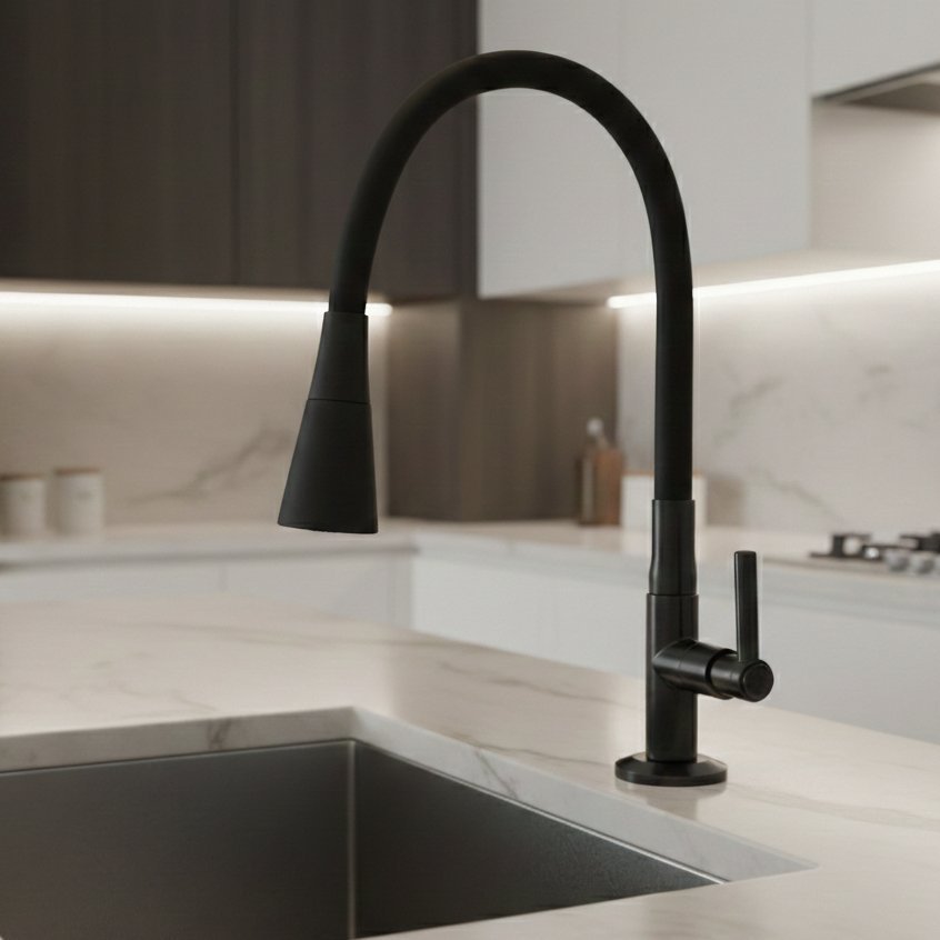 Torneira gourmet cozinha mesa bancada pia flexível preta abs