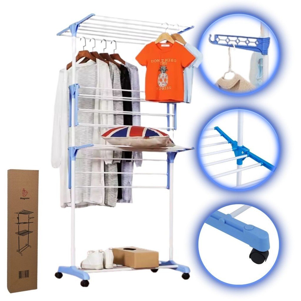 Varal magnow reforçado 3 andares dobrável com rodas p/ 10kg