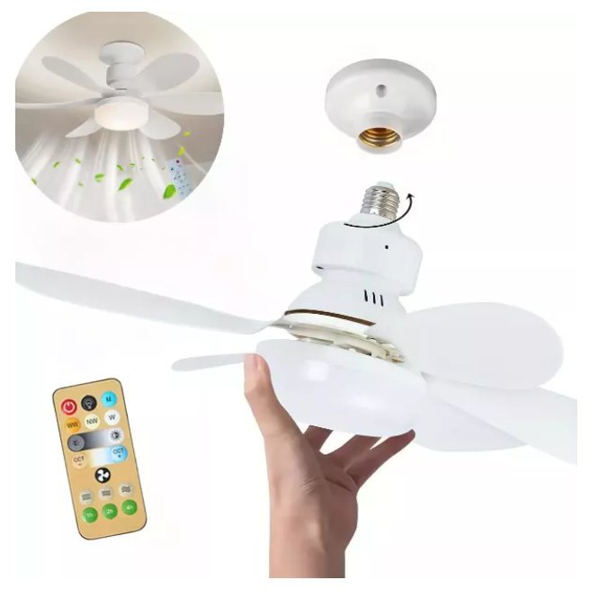 Ventilador teto com lâmpada led luminária 60w e27 3 velocidades bivolt 6 pás