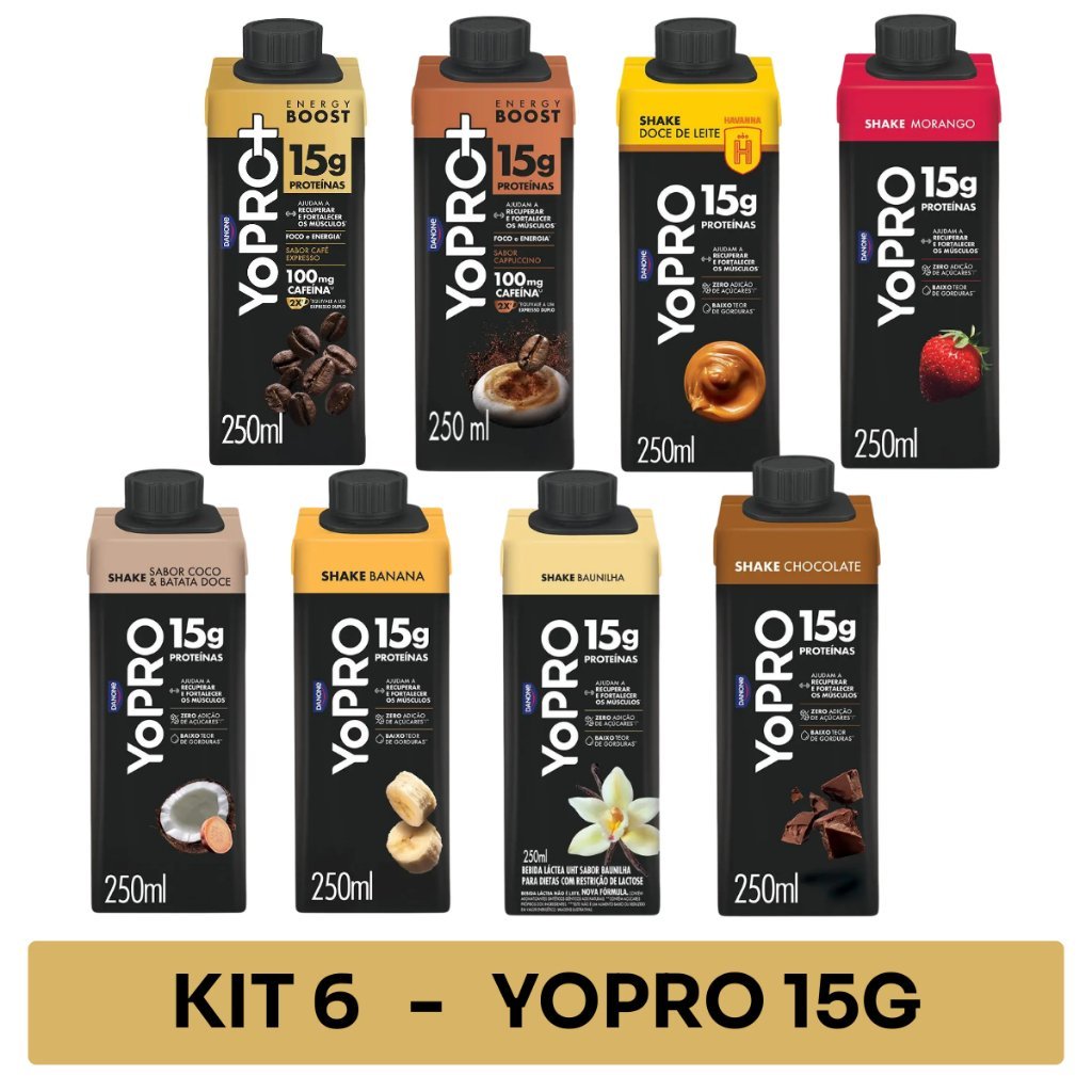 Yopro kit 6 unidades bebida láctea 15g de proteínas 250ml sabores